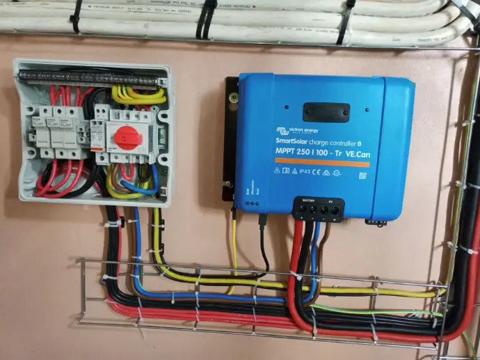 Victron 150/35 MPPT solar charge controller: maximizes solar system efficiency by regulating battery charging and optimizing solar energy conversion.