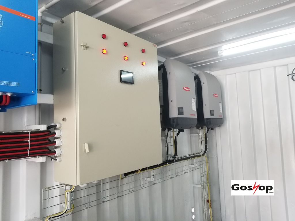 Goshop Solar Unit a été conçu comme une solution "Plug&Play", facile à transporter (Container 20 pieds) et à déployer sur le site et prêt à se connecter sur le réseau électrique d'un hôpital, d'une université, d'un village et d'une installation industrielle ou agricole...