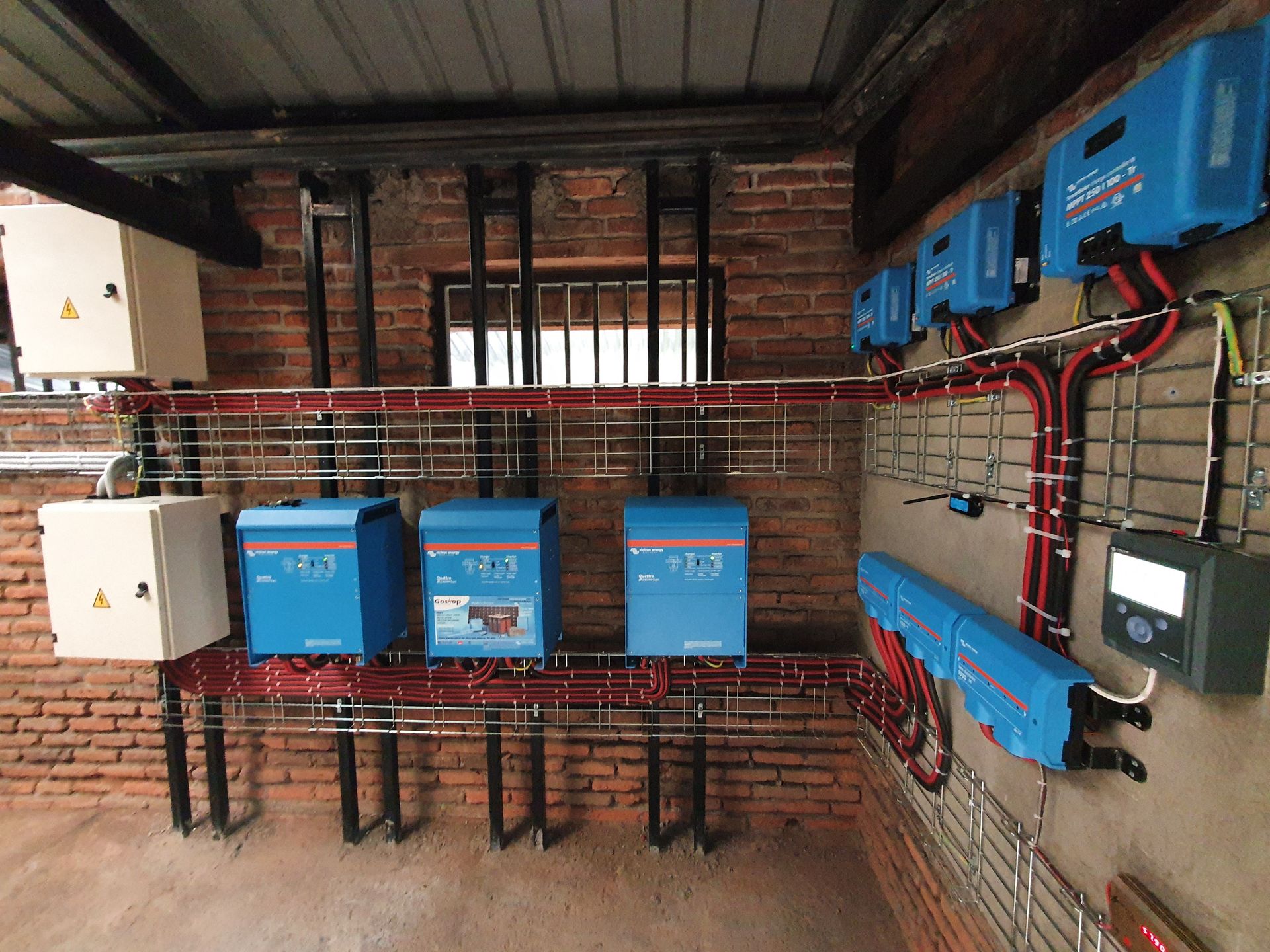 C’est un système de ce genre qui a été installé au restaurant Le Chalet à Goma pour couvrir le besoin en énergie de ce dernier 24h/7 jours. Ce système privilégie plus l’utilisation de l’énergie solaire que d’autres sources d’énergie auquel il est connecté. Quand il produit plus d’électricité que son besoin et sa capacité de stockage, il peut en vendre le surplus au réseau et en cas de besoin d’électricité suite à une faible production et stockage, ce dernier peut racheter de l’électricité sur le réseau électrique auquel il est connecté.  Avec ceci, le restaurant Le Chalet ainsi que tous ses appartements sont à l’abri des soucis d’électricité au quotidien et bénéficie d’un allègement très sensible de sa facture mensuelle d’électricité.