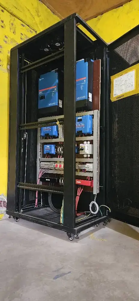 - Two Victron Multiplus 5kVA converters mounted in parallel to provide 10kVA output,